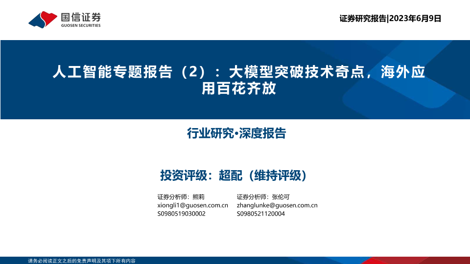 【国信证券】【20230609】2023-06-12-人工智能专题报告(2)-大模型突破技术奇点-海外应用百花齐放-54页
