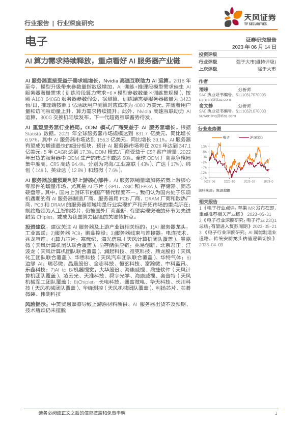 【天风证券】【20230614】2023-06-15-电子行业深度研究-AI算力需求持续释放-重点看好AI服务器产业链-29页