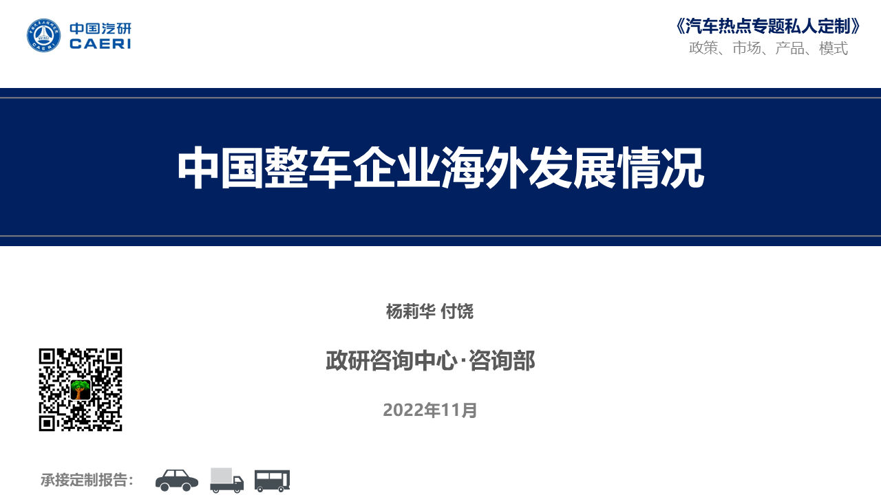 【中国汽研】【202211】中国整车企业海外发展情况(简版)-38页