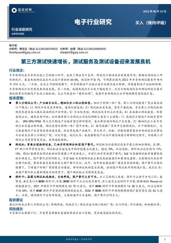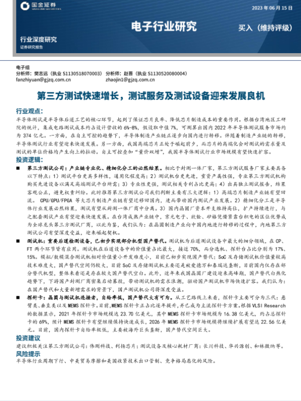 【国金证券】【20230616】电子行业深度研究-第三方测试快速增长-测试服务及测试设备迎来发展良机-30页