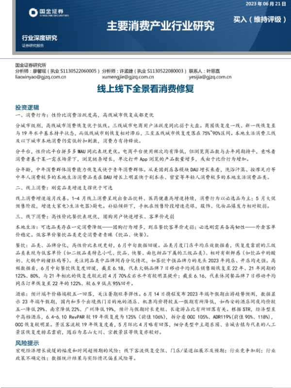 【国金证券】【20230621】2023-06-25-主要消费产业行业研究-线上线下全景看消费修复-22页