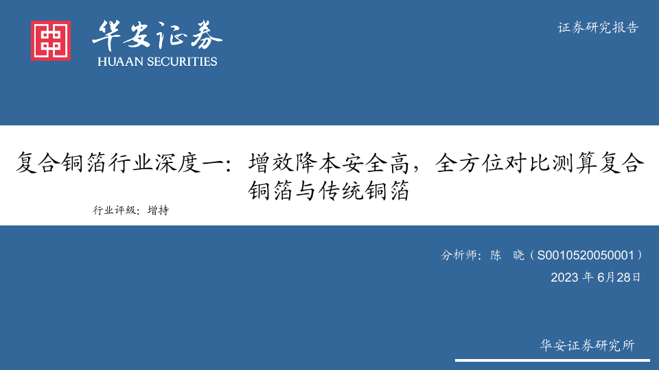 【华安证券】【20230628】复合铜箔行业深度一:增效降本安全高,全方位对比测算复合铜箔与传统铜箔-48页