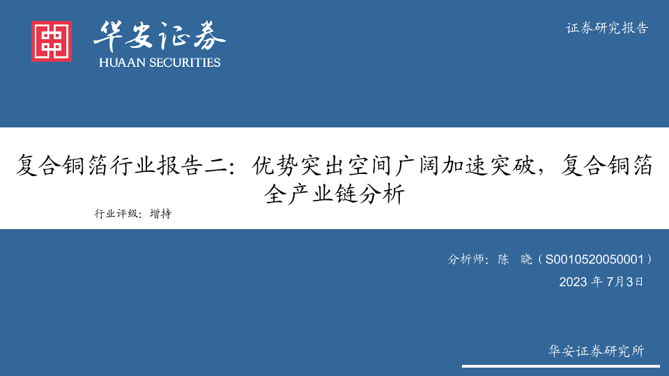 【华安证券】【20230704】复合铜箔行业报告二:优势突出空间广阔加速突破,复合铜箔全产业链分析-58页