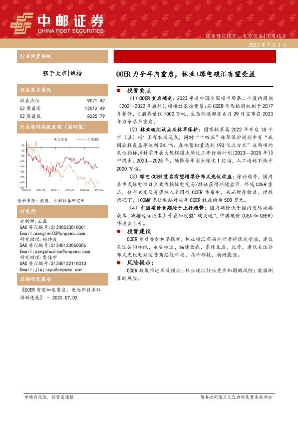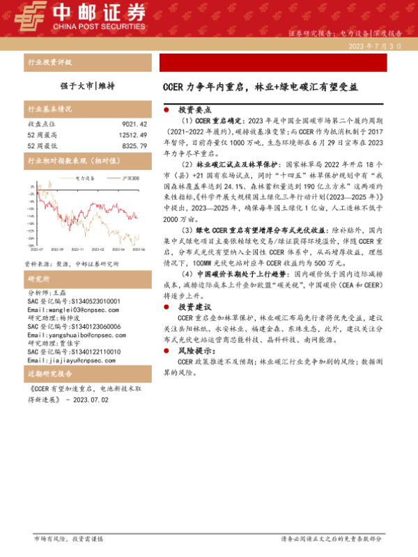 【中邮证券】【20230703】2023-07-05-电力设备深度报告-CCER力争年内重启-林业+绿电碳汇有望受益-27页