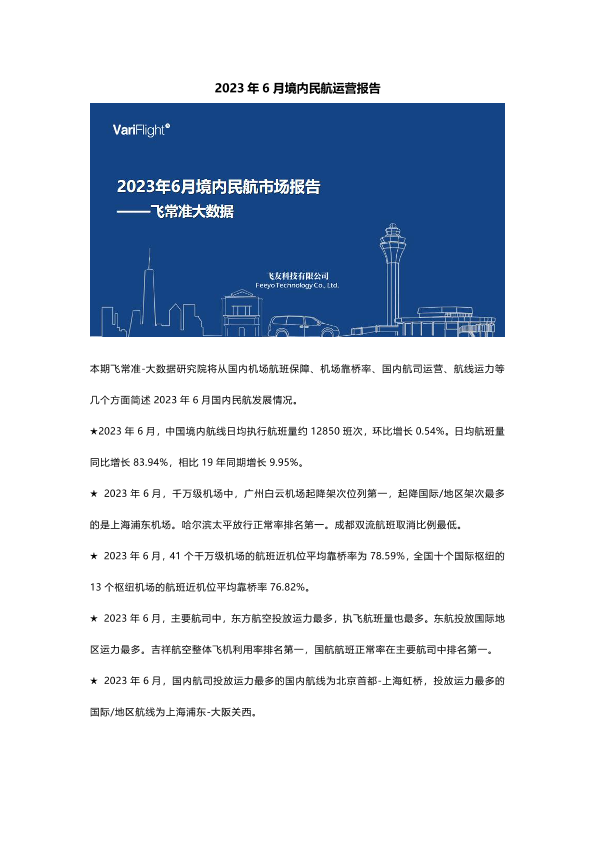 【飞常准-大数据研究院】【20230706】2023年6月境内民航运营报告-14页