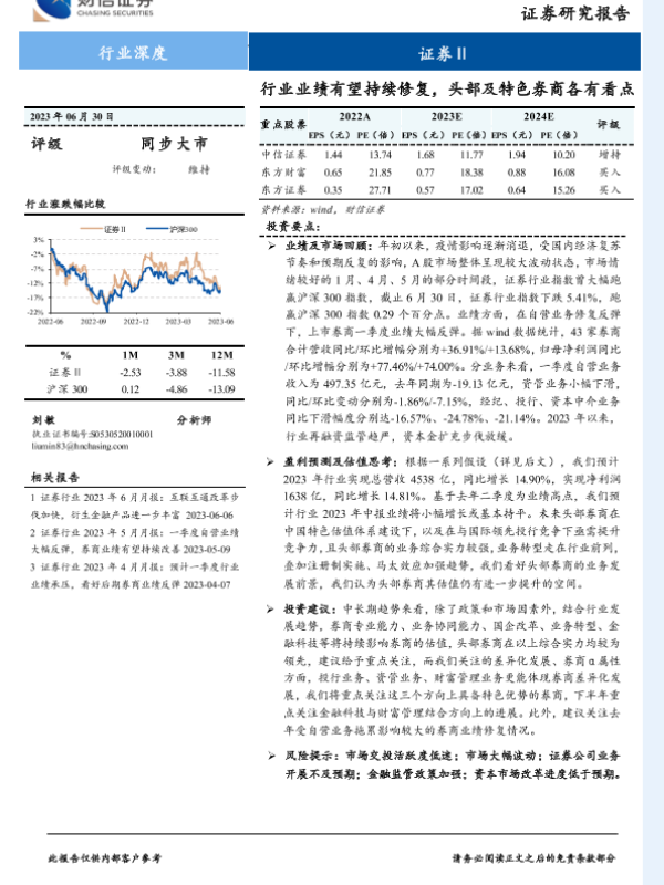 【财信证券】【20230630】证券行业深度-行业业绩有望持续修复-头部及特色券商各有看点-20页