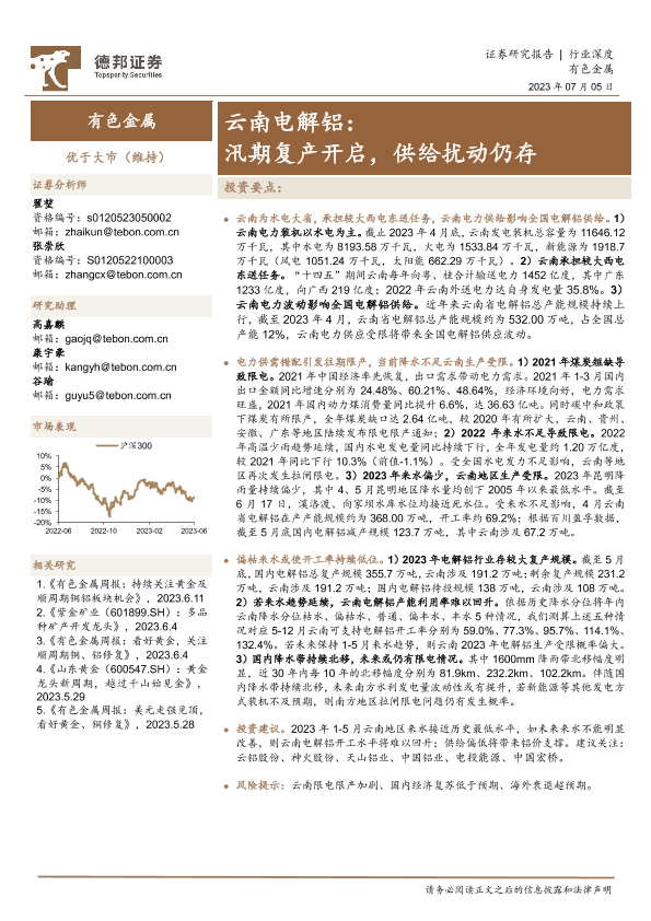 【德邦证券】【20230705】2023-07-06-有色金属行业深度-云南电解铝-汛期复产开启-供给扰动仍存-20页