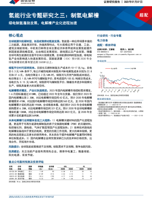 【国信证券】【20230707】氢能行业专题研究之三:制氢电解槽-绿电制氢蓬勃发展-电解槽产业化进程加速-34页