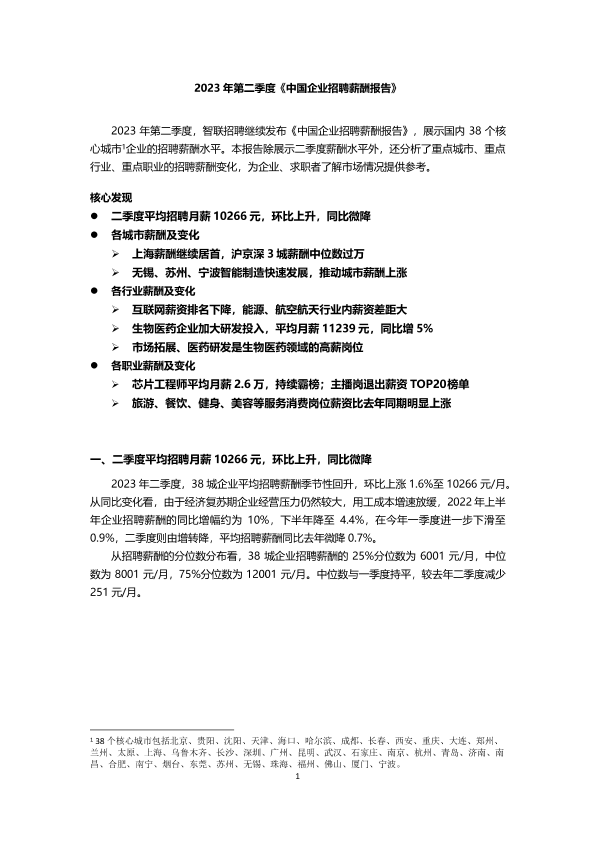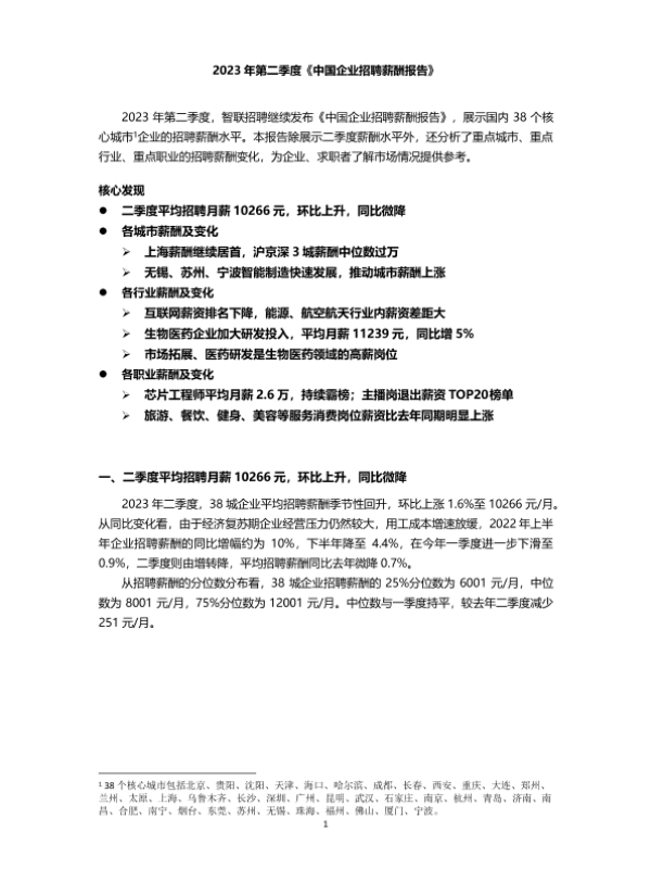 【智联招聘】【20230710】2023年第二季度中国企业招聘薪酬报告-9页