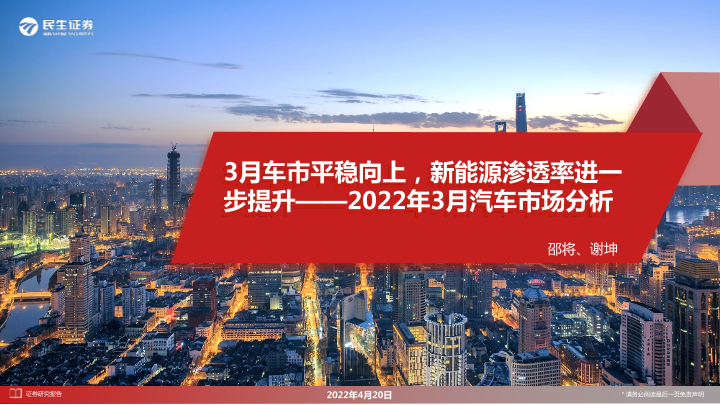 【民生证券】【20220420】2022年3月汽车行业市场分析:3月车市平稳向上,新能源渗透率进一步提升-34页