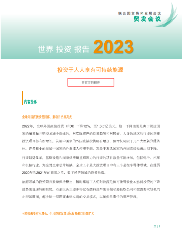 【联合国贸发会议】【20230711】2023年世界投资报告(精简版)-10页