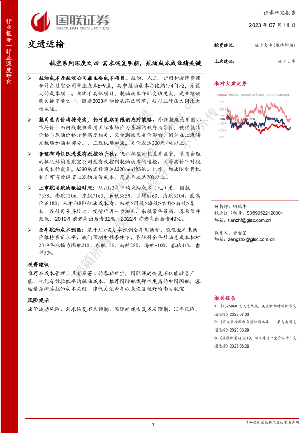 【国联证券】【20230711】2023-07-12-交通运输-航空系列深度之四-需求恢复明朗-航油成本成业绩关键-24页