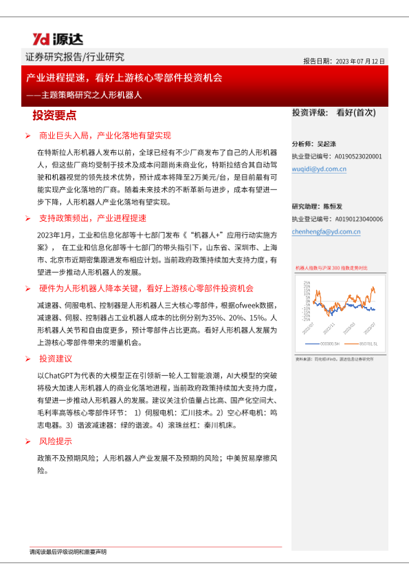 【源达信息】【20230712】主题策略研究之人形机器人-产业进程提速-看好上游核心零部件投资机会-13页