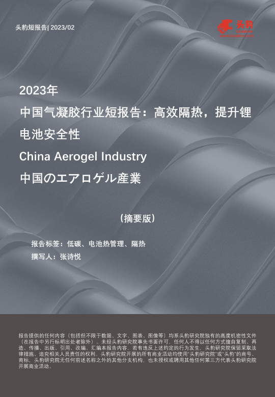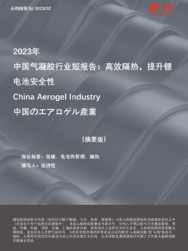 【头豹研究院】【202302】2023年中国气凝胶行业短报告-高效隔热-提升锂电池安全性(摘要版)-10页
