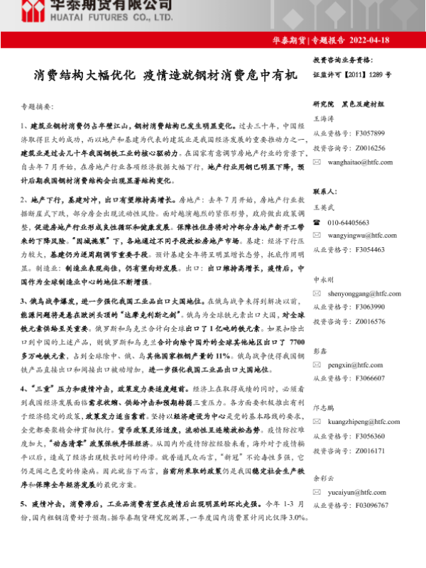 【华泰期货】【20220418】消费结构大幅优化,疫情造就钢材消费危中有机-25页