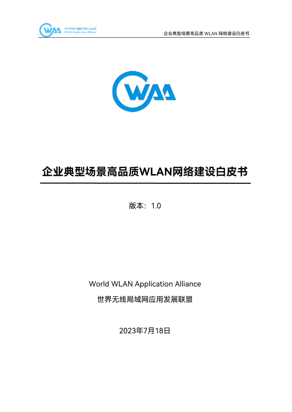 【世界无线局域网应用发展联盟(WAA)】【20230718】2023企业典型场景高品质WLAN网络建设白皮书-55页