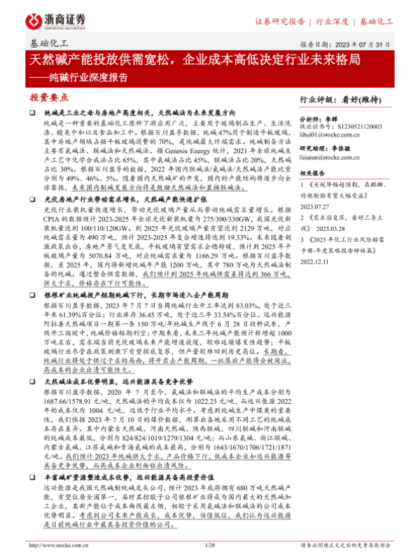 【浙商证券】【20230731】纯碱行业深度报告-天然碱产能投放供需宽松-企业成本高低决定行业未来格局-20页