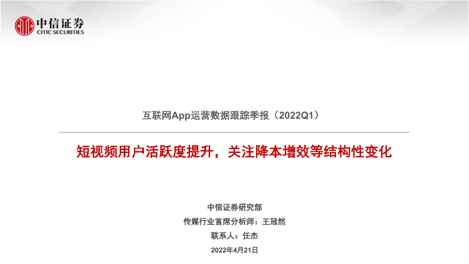 【中信证券】【20220421】互联网行业App运营数据跟踪季报(2022Q1):短视频用户活跃度提升,关注降本增效等结构性变化-15页