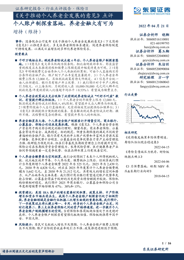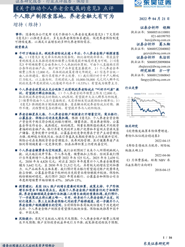 【东吴证券】【20220421】保险行业《关于推动个人养老金发展的意见》点评:个人账户制探索落地,养老金融大有可为-16页