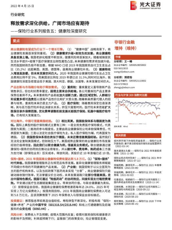 【光大证券】【20220415】保险行业系列报告五:健康险深度研究,释放需求深化供给,广阔市场应有期待-41页