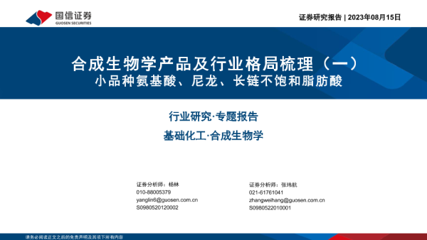 【国信证券】【20230815】合成生物学产品及行业格局梳理(一)-小品种氨基酸、尼龙、长链不饱和脂肪酸-91页