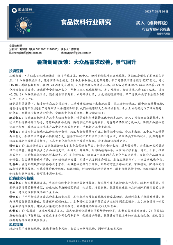 【国金证券】【20230817】2023-08-17-食品饮料行业专题研究报告-暑期调研反馈-大众品需求改善-景气回升-16页