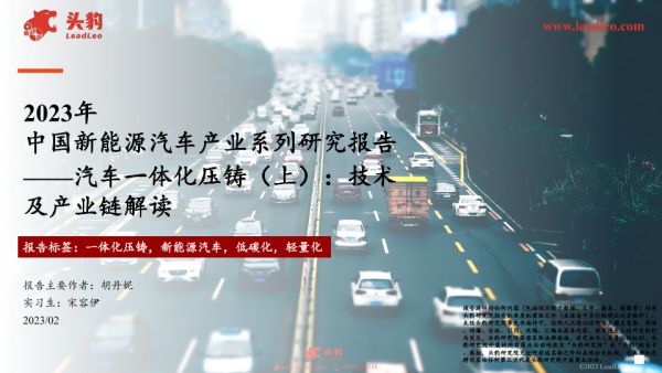 【头豹研究院】【20230818】2023年中国新能源汽车产业系列研究报告——汽车一体化压铸(上):技术及产业链解读-30页