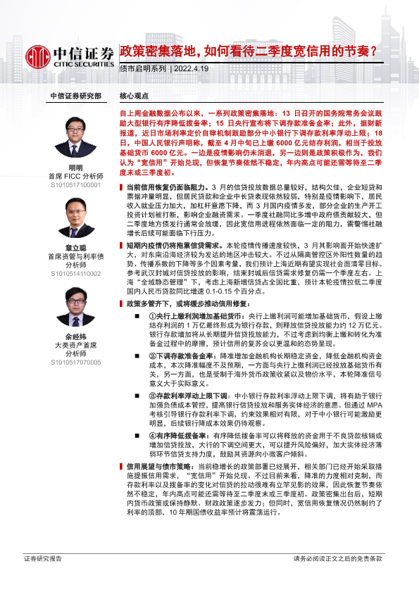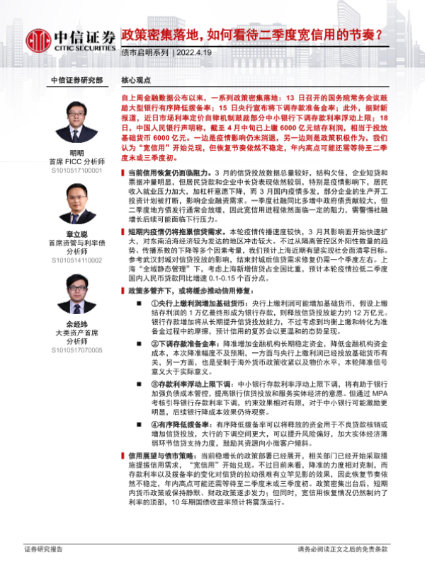 【中信证券】【20220419】政策密集落地,如何看待二季度宽信用的节奏?-33页