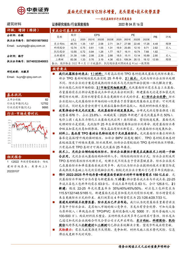 【中泰证券】【20220416】光伏屋面防水行业深度报告:屋面光伏贡献百亿防水增量,龙头渠道+技术优势显著-25页