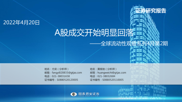 【国泰君安证券】【20220420】全球流动性观察系列4月第2期:A股成交开始明显回落-50页