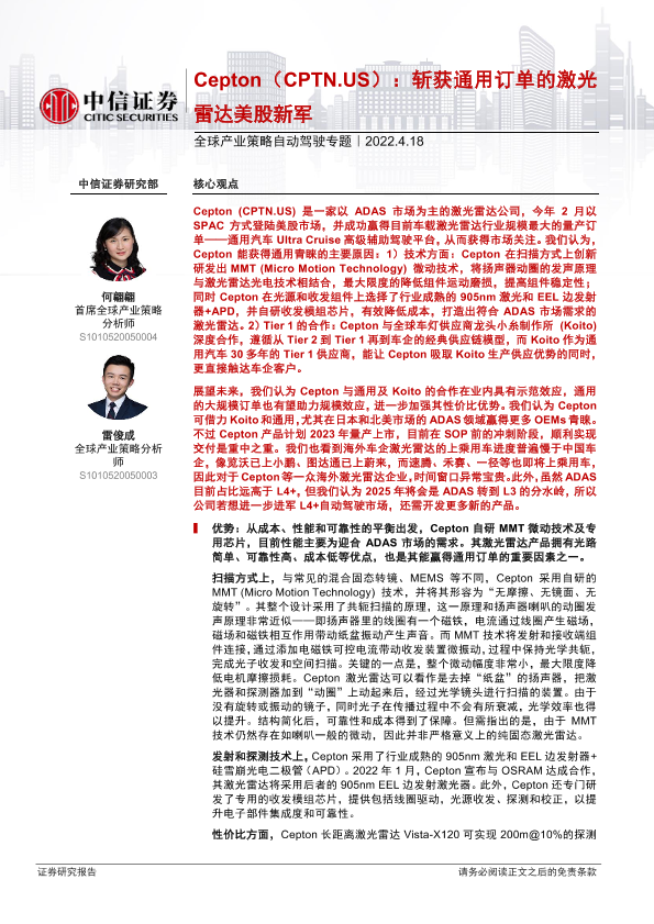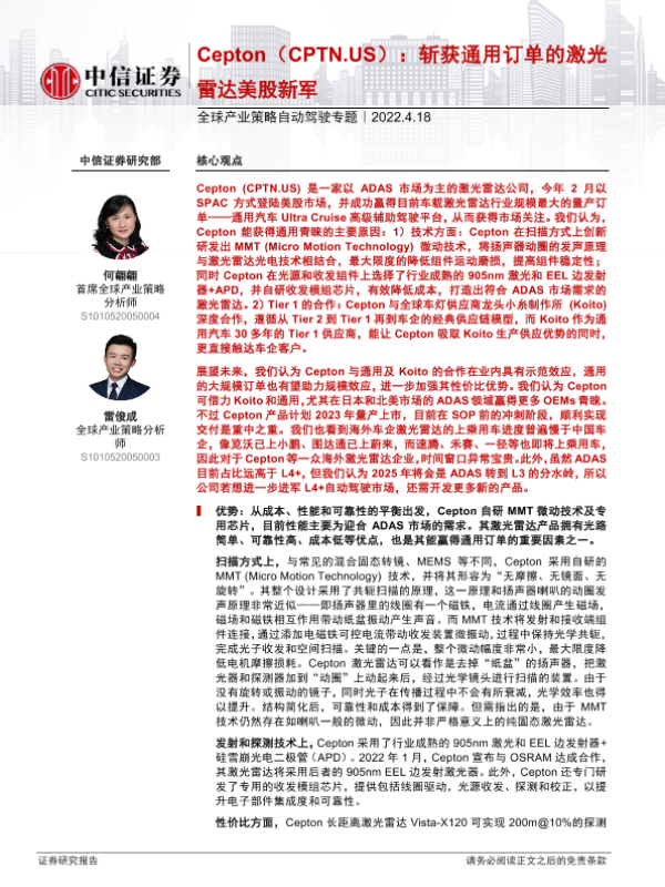 【中信证券】【20220418】全球产业策略自动驾驶专题:Cepton(CPTN.US),斩获通用订单的激光雷达美股新军-15页