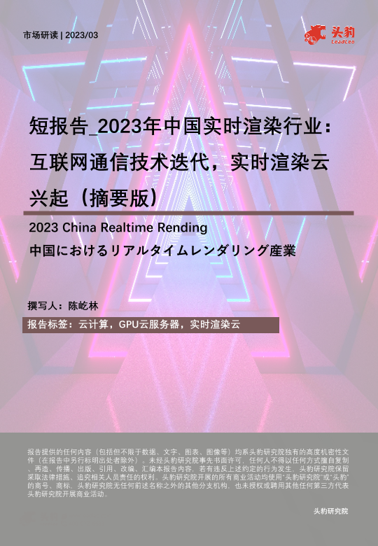【头豹研究院】【202303】2023年中国实时渲染行业:互联网通信技术迭代,实时渲染云兴起(摘要版)-18页