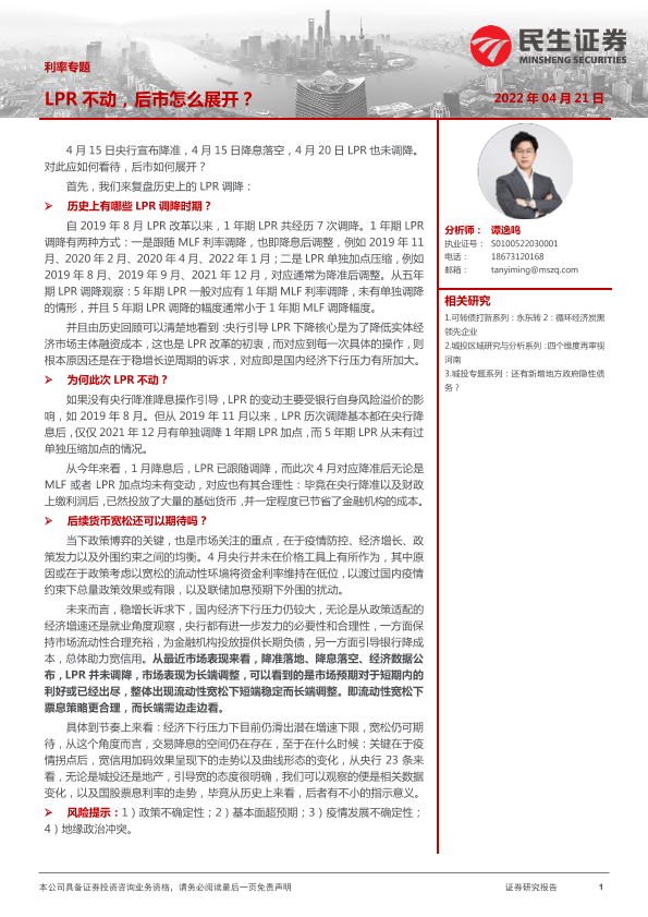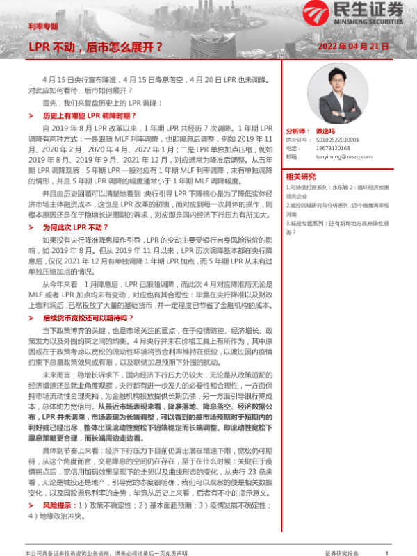 【民生证券】【20220421】利率专题:LPR不动,后市怎么展开?-16页