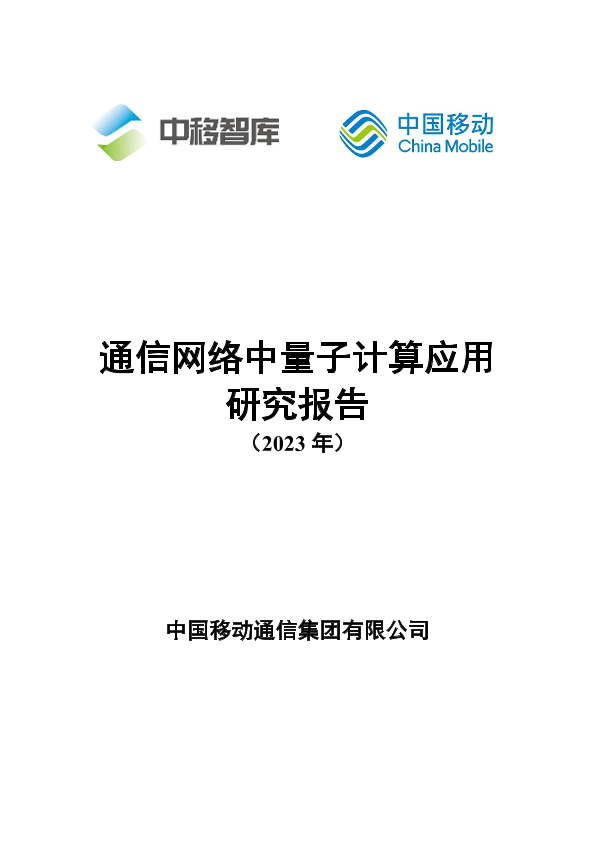 【中国移动通信集团有限公司】【2023】通信网络中量子计算应用研究报告-40页