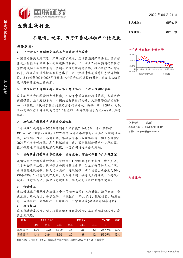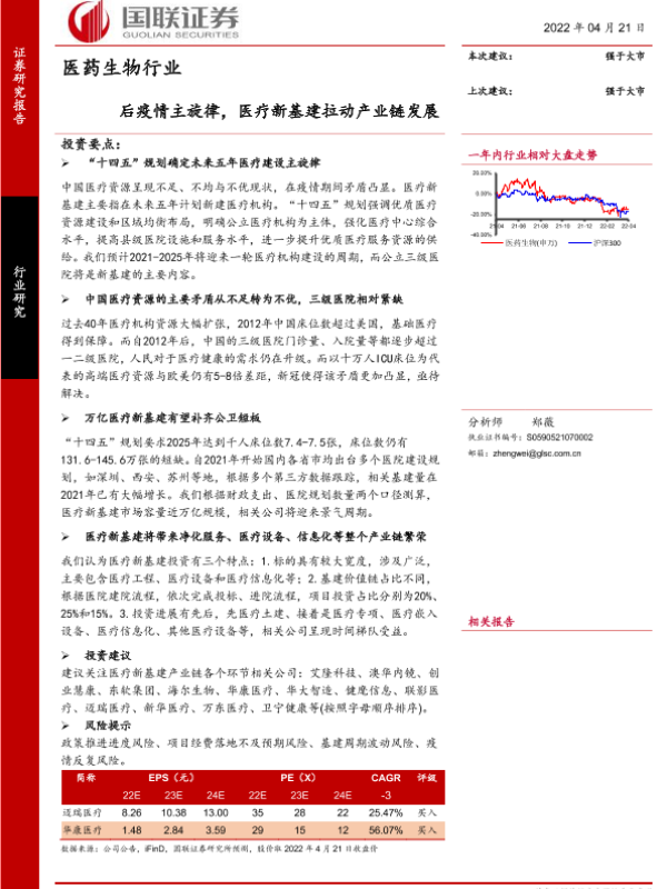 【国联证券】【20220421】医药生物行业:后疫情主旋律,医疗新基建拉动产业链发展-31页