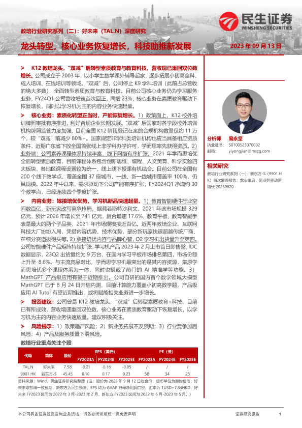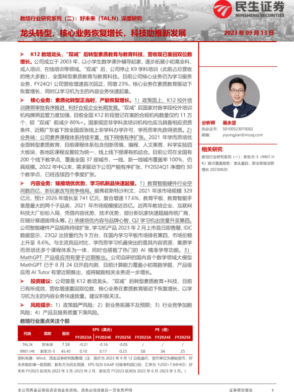 【民生证券】【20230913】教培行业研究系列(二):好未来(TAL.N)深度研究-33页