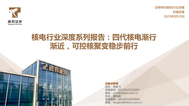 【德邦证券】【20230919】核电行业深度系列报告:四代核电渐行渐近,可控核聚变稳步前行-55页