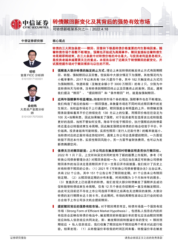 【中信证券】【20220418】可转债新框架系列之一:转债赎回新变化及其背后的强势有效市场-15页