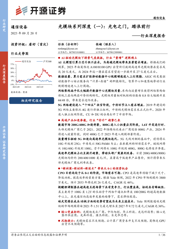 【开源证券】【20230921】光模块系列深度(一):光电之门,踏浪前行-36页