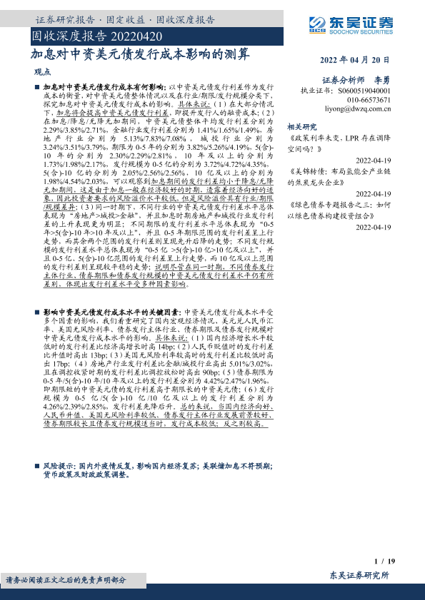 【东吴证券】【20220420】固收深度报告:加息对中资美元债发行成本影响的测算-19页