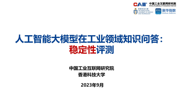 【中国工业互联网研究院】【202309】2023人工智能大模型在工业领域知识问答稳定性评测报告-31页