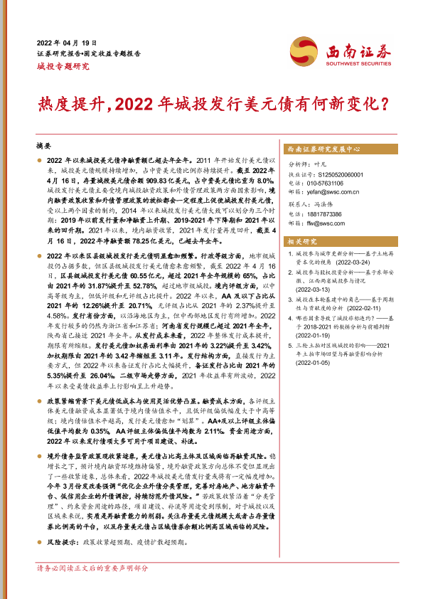 【西南证券】【20220419】城投专题研究:热度提升,2022年城投发行美元债有何新变化?-18页