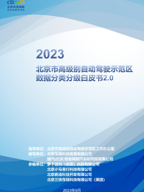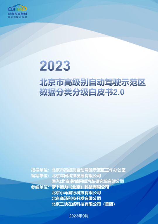 【北京市高级别自动驾驶示范区工作办公室】【202309】2023北京市高级别自动驾驶示范区数据分类分级白皮书2.0-63页