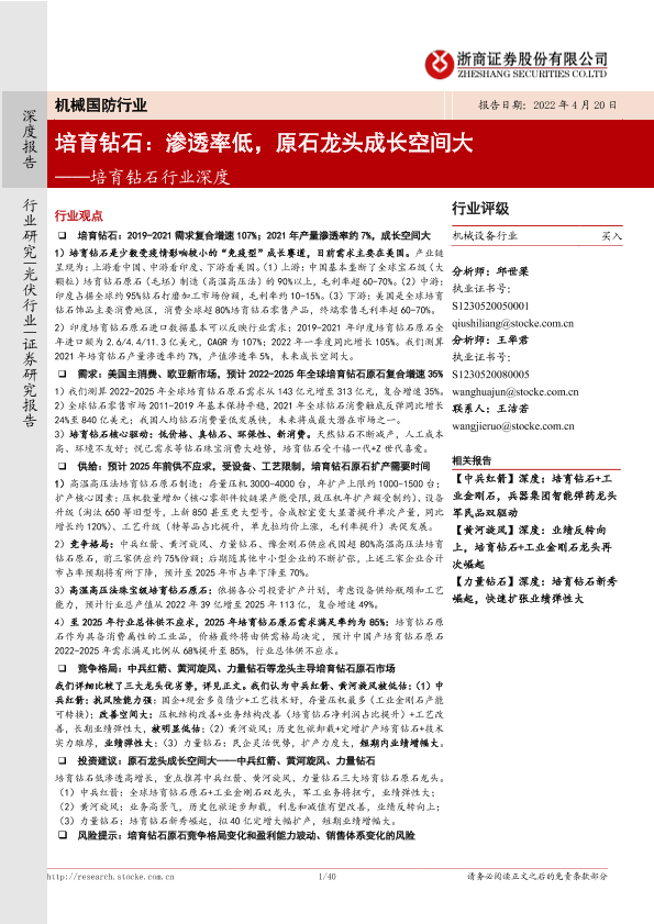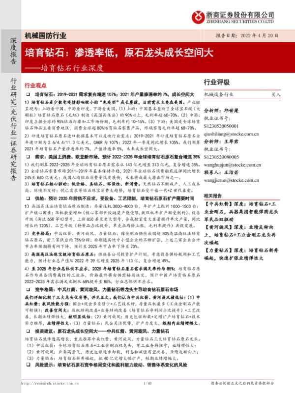 【浙商证券】【20220420】培育钻石行业:渗透率低,原石龙头成长空间大-40页