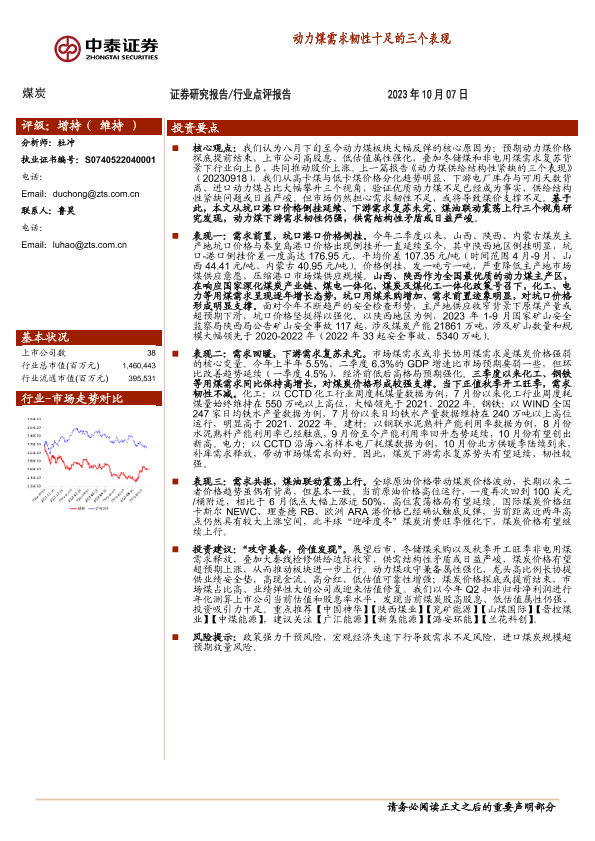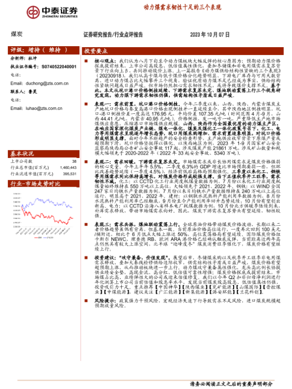 【中泰证券】【20231007】2023-10-08-煤炭-动力煤需求韧性十足的三个表现-7页
