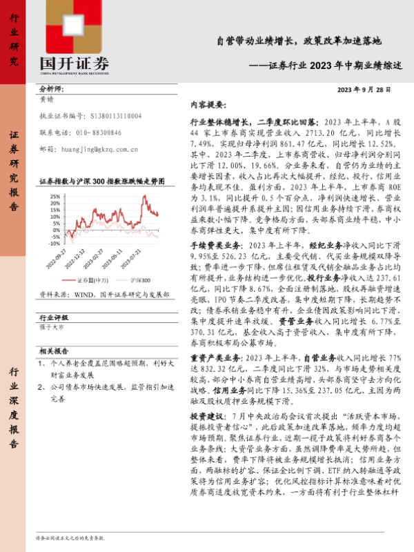 业绩综述 市场走势 政策改革 自营收入 证券行业
