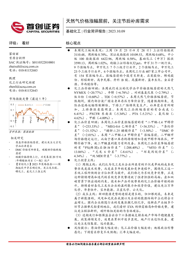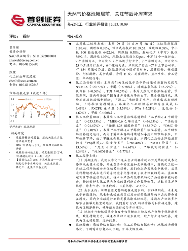 【首创证券】【20231009】2023-10-10-基础化工行业简评报告-天然气价格涨幅居前-关注节后补库需求-18页