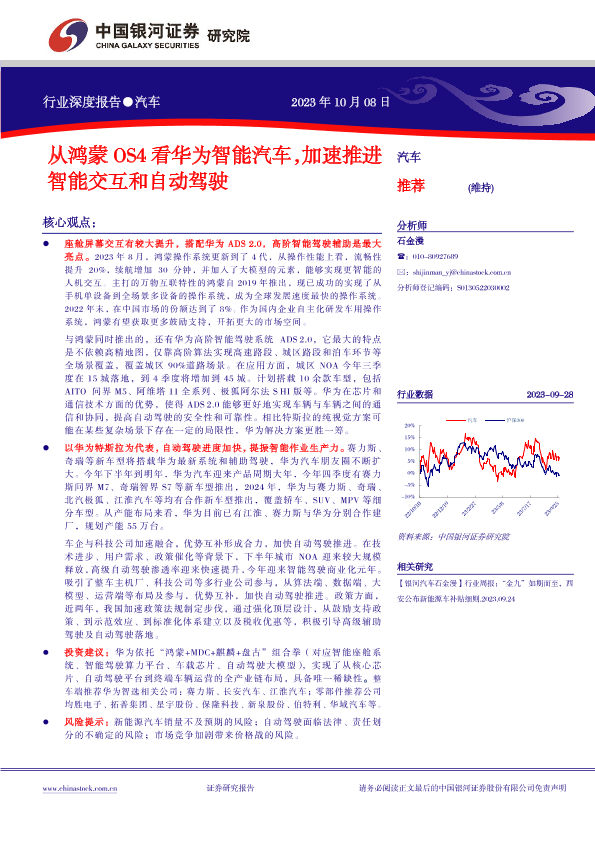 【银河证券】【20231008】从鸿蒙OS4看华为智能汽车,加速推进智能交互和自动驾驶-30页