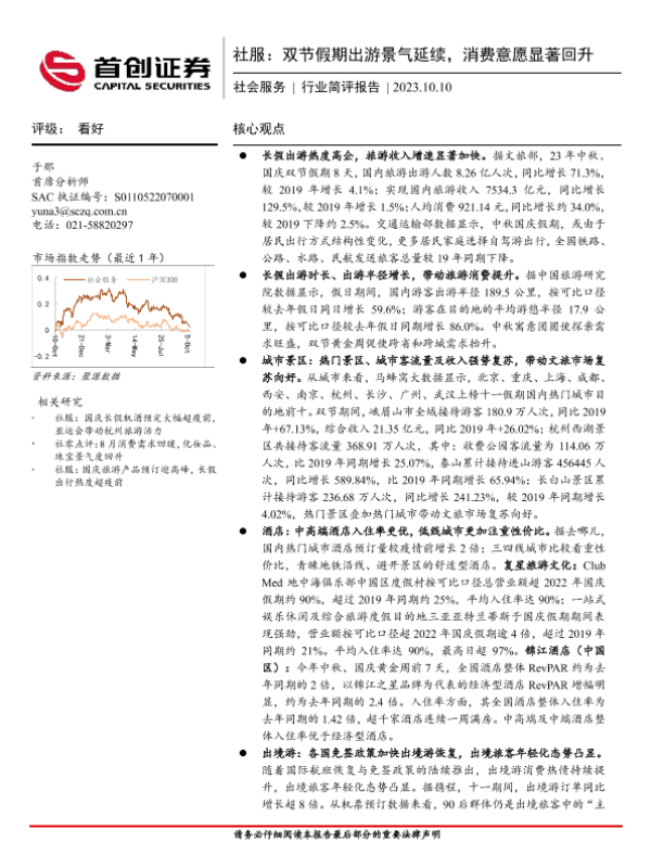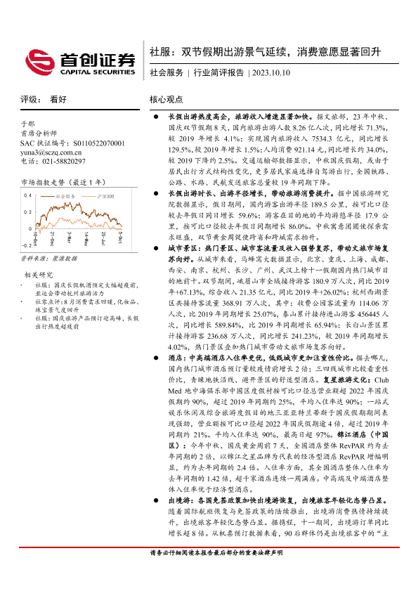 【首创证券】【20231010】社服:双节假期出游景气延续,消费意愿显著回升-13页
