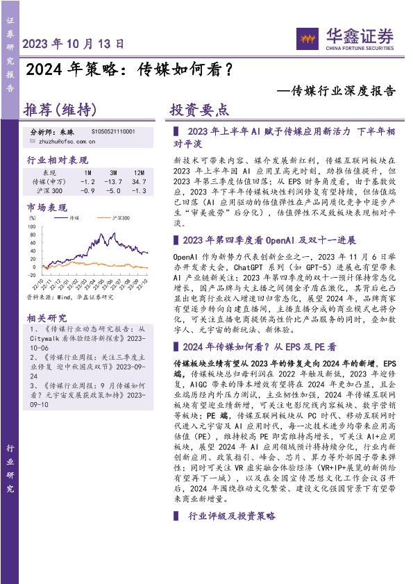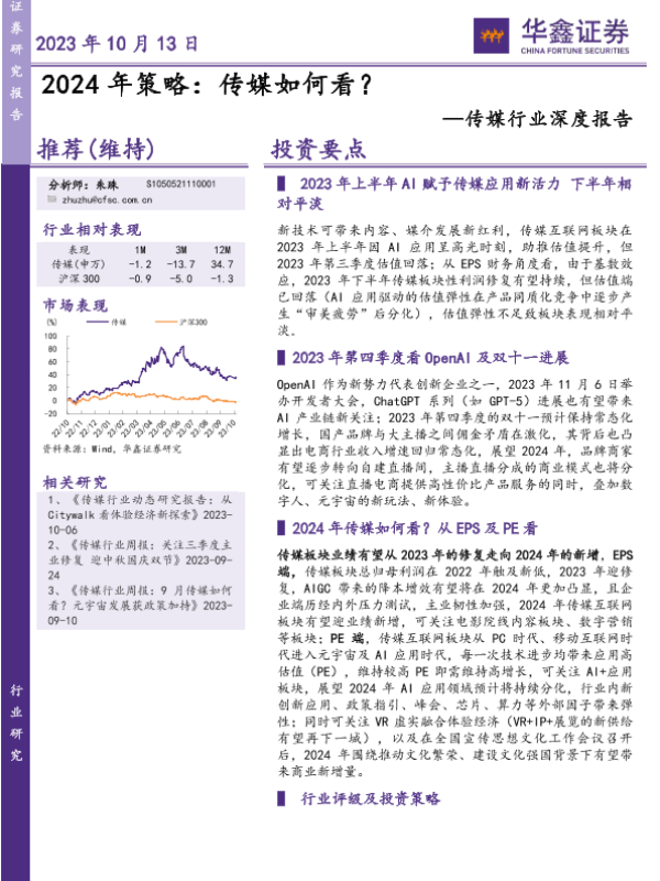 2024年展望 AI应用 传媒行业 市场表现 投资策略